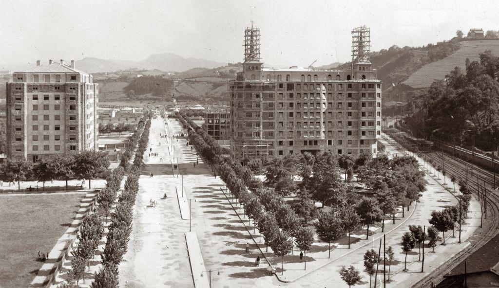 - Antso Jakitunaren hiribidea eta Mendeurrenaren plaza, duela 60 urte (Argazkia: Amarauna)