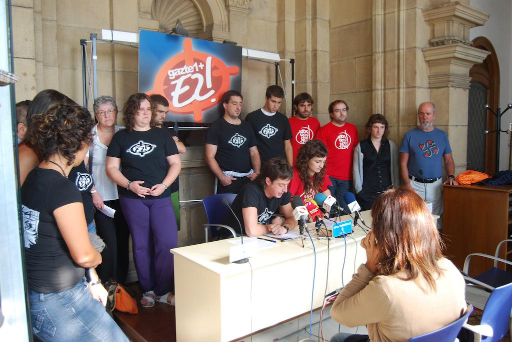 Segiko kide izateagatik zigortuak izan ziren hamabost gazte donostiarretako batzuek beraien egoera salatu eta “epaiketa politikoen amaiera” eskatu zuten. Hainbat lagun eta senideekin batera, Gazte 1+ ez lelodun kamisetak soinean zituztela, auzipetuek prentsaurrekoa egin zuten elkarteen eskura dagoen udaletxeko prentsa aretoan. Denen izenean, Parte Zaharreko Oier Lorentek eta Nahikari Otaegi amaratarrak idatzi bat irakurri zuten.