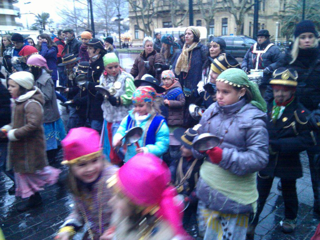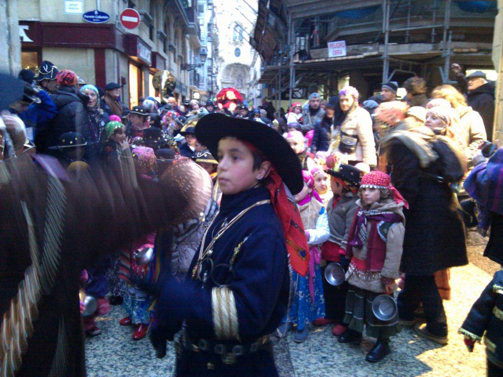 Parte Zaharreko auzotar txikienek hasi dute kaldereroen jaia. Auzoko hainbat elkartek antolatuta, haurren konpartsak ibilbidea hasi du Trinitate plazan. Kalez kale eraman dituzte inauterien iragarle diren doinuak.