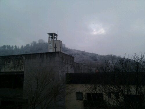 - Amarako Familia Santuaren eliza; eta atzean, Puio, elurtuta. (Argazkia: Nerea Lizarralde)