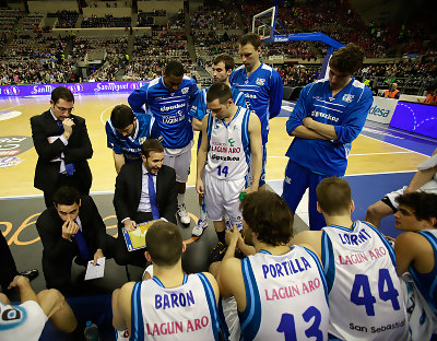 Palau Sant Jordiko derbia, iruditan. Lagun Aro Gipuzkoa Basketek ilusioz ekin zion atzo klubaren historia laburreko lehen Kopari, baina ezin izan zuen aurrera egin. Final-laurdenetan, partida hasiera zoragarria egin arren, agur esan behar izan zion txapelketari; hori bai, duintasunez. Esperientzia oso baliagarria izan da, bai jokalarientzat eta baita zaleentzat ere: lehenengoek, etorriko diren erronkei begira eskarmentua hartu dutelako; eta bigarrenek, hitzordu handi batekin gozatu dutelako lehen aldiz. Irudi ederrak utzi zituen Bartzelonako Palau Sant Jordin jokatutako norgehiagokak. Hona hemen horietako batzuk.