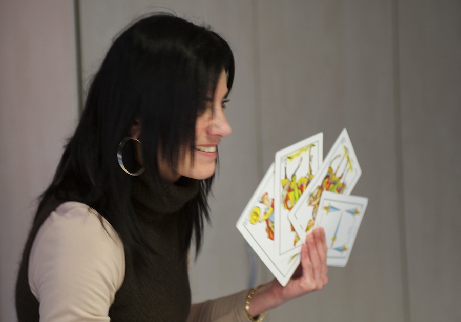 - Egokitutako kartak ere badituzte ikusmen urria duten pertsonak, batzuk oso handiak eta beste batzuk Braille zeinuekin. (Argazkia: Mikel Goñi)