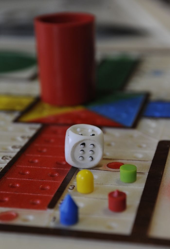 - Partxis jokoko fitxak bereizteko, kolorea ez ezik, forma ere erabiltzen dute itsuek. (Argazkia: Mikel Goñi)