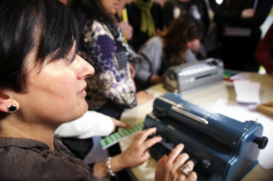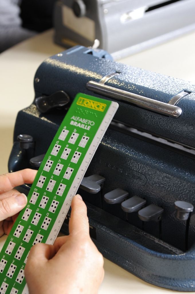 - Braille sistemarekin idazteko makina tradizionala probatu dute bisitariek.