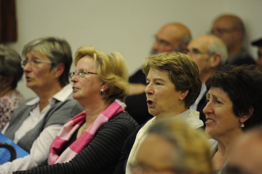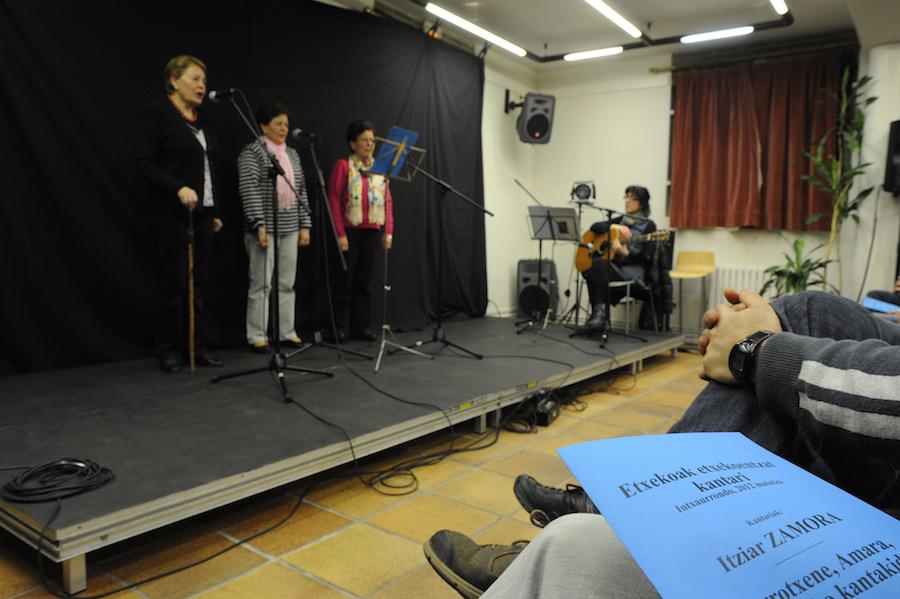 Hainbat auzoetako kantu taldeetako kideak izan ziren taula gainean 'Etxekoekin Kantari' saioan. (Argazkiak: Mikel Goñi).