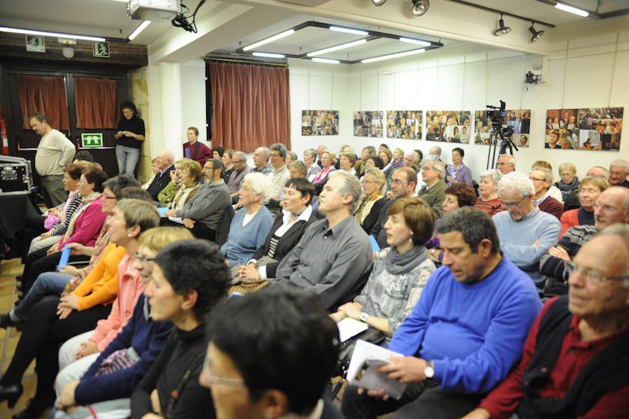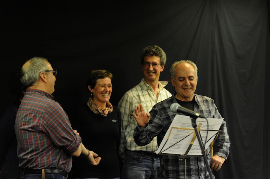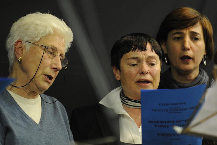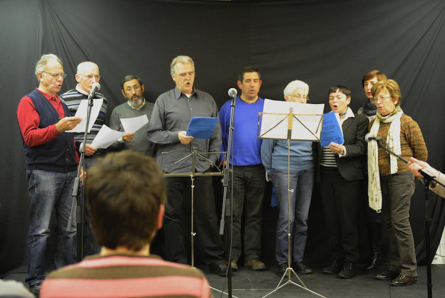 - Hainbat auzoetako kantu taldeetako kideak izan ziren taula gainean ‘Etxekoekin Kantari’ saioan. (Argazkiak: Mikel Goñi).