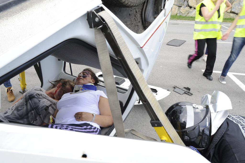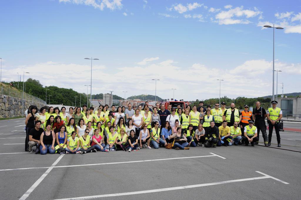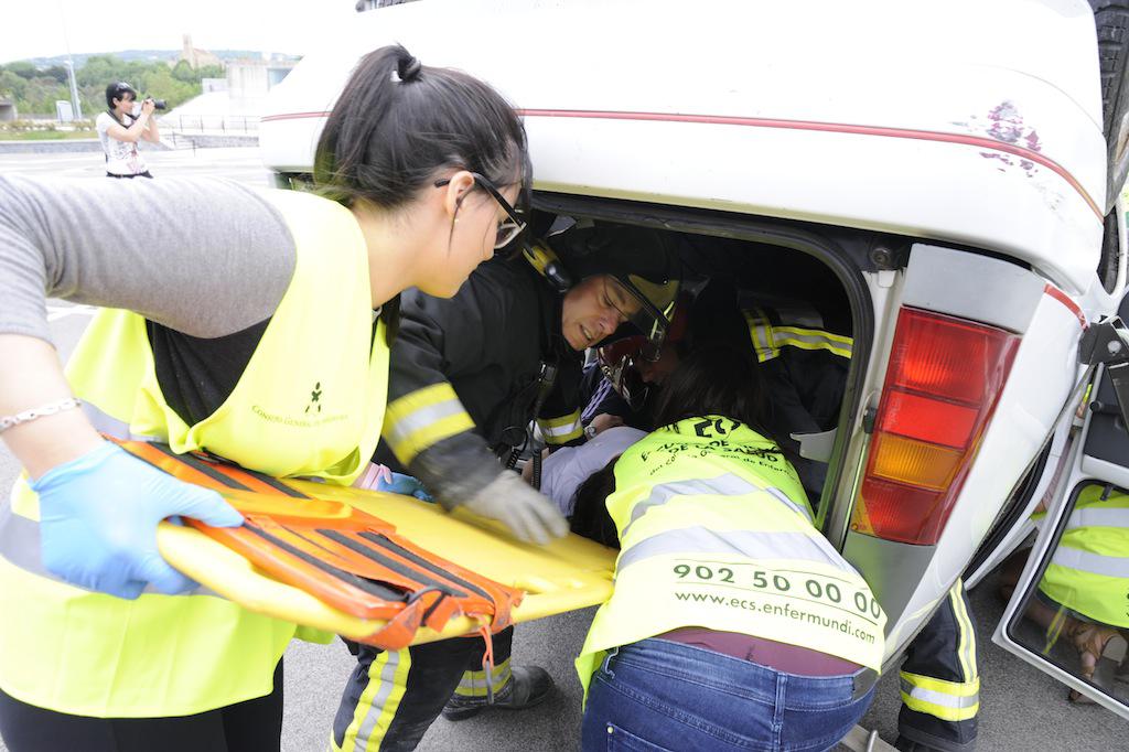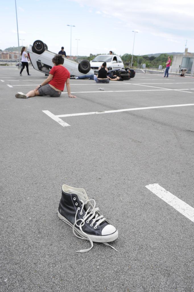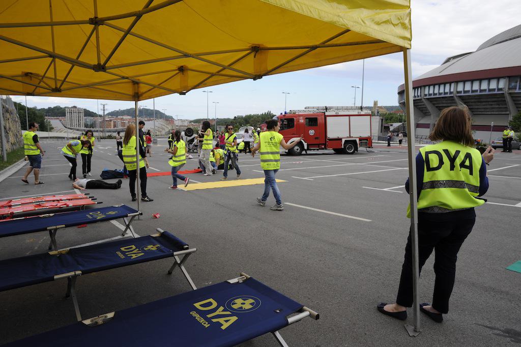 Benetako hiru ibilgailuren arteko istripuaren itxurak egin dituzte, eta larrialdi handi baten moduan jokatu dute. Suhiltzaileek, esaterako, talka egindako kotxeetako baten sabaia moztu egin dute. Anbulantziak ere gora eta behera ibili dira.