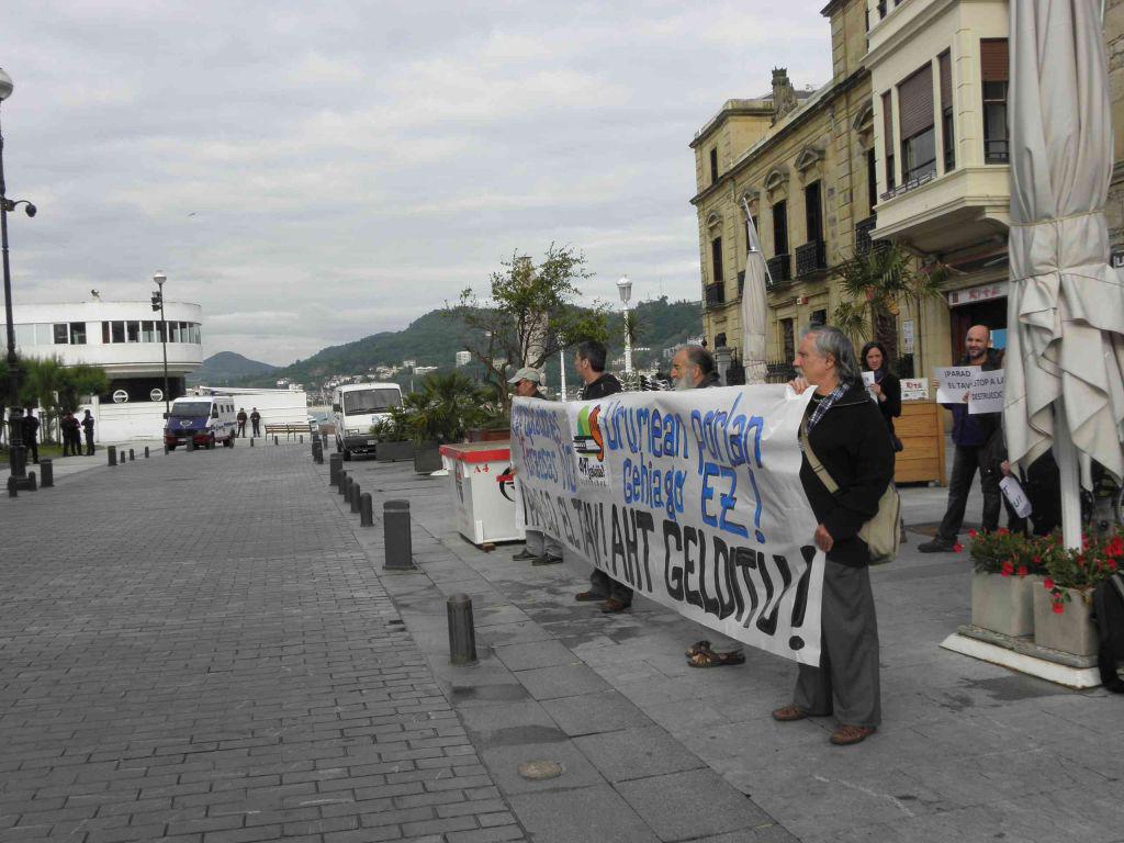 AHTaren aurkako Donostiako mugimenduak, Martuteneko bizilagunekin bat egin nahi izan zuen atzokoan, euren egoera salatuz. Hala, udaletxe aurrean elkarretatzea egin zuten 20 bat lagunek, goizean goiz. «Denak gara kaltetuak!»; «Urumean, porlan gehiago ez!»; «Baserri lurrak bai, AHTrik ez!»; «AHT gelditzeko, borroka dezagun», eta antzeko leloekin egin zuten protesta bertaratutakoek. Guztira, 150.000 metro koadro desjabetu nahi ditu ministerioak, AHTaren aurkako mugimenduaren arabera.