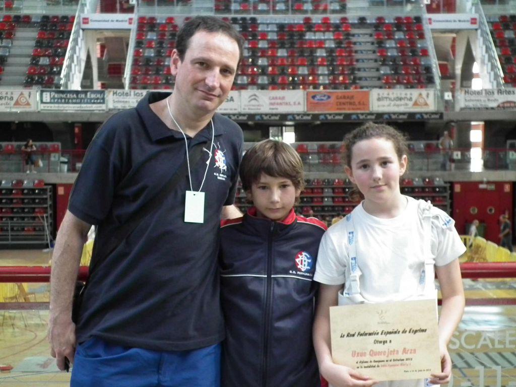 Fortunako bi tiratzailek lan bikaina osatu zuten joan den asteburuan Madrilen jokatutako M-12 Esgrima Txapelketan. Zehazki, Uxue Kerejeta txapelduna izan zen alebin mailako sable kategorian. Espainia mailan jokatutako lehen lehia izan zen Kerejetarentzat, eta 40 partaide baino gehiagoren artean onena izan zen, urrezko domina eskuratuz. Julen Casajusek, berriz, zilarrezko domina eskuratu zuen alebin mailan, 60 lehiakideren artean. Irudian, Kerejeta eta Carajus, Igor Otaegi maisuarekin.