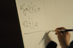 Errimak egitearen oinarria menderatuta zeukaten. Hitz laukotea arbelean idatzita, bakoitzari ideia bana lotu zioten.