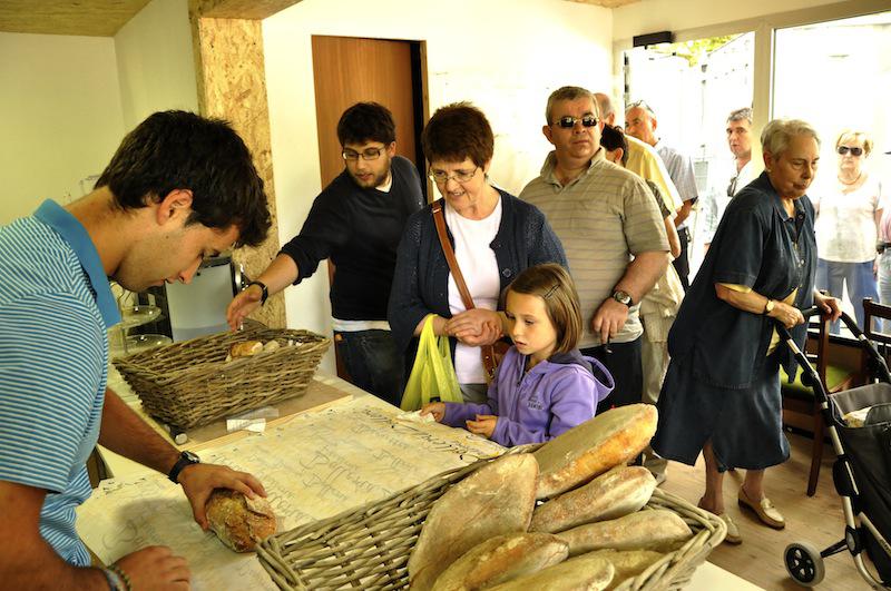 Txanponaren bi aldeak Ogia artisauen moduan egiten du Lepardek, eta horixe bera da Frantzia pasealekuko «kanpainako okindegian» egin eta saltzen ari direna. Artisauen moduan lan egiteak ekoizpenaren kopuruari mugak jartzen dizkio. Horrek eta behin behineko okindegiak sortutako jakin minak ogia labetik irten bezain pronto saltzea ekarri dute. Egiako Maria Corral adineko emakumea da, eta zorionekoa izan da, 12:30ean labetik atera dituzten 80 ogietatik azkena erosi ahal izan duelako. «Atzo ikusi nuen hau hemen zegoela, eta ogia, baina benetako ogia, asko gustatzen zaidanez, gaur etortzea erabaki dut».