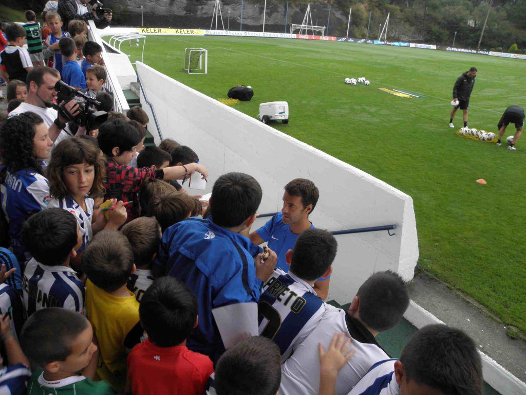 Behin entrenamendua bukatuta, jokalariengana hurbildu ziren bostekoak luzatzera. Eta nola ez, sinadurak eskatzen aritu ziren. Xabi Prieto izan zen haurrekin adeitsuena.