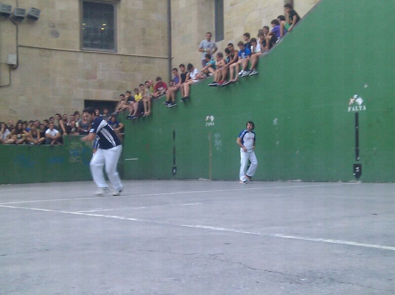 David Errandonea eta Lauren Hargindegi Groseko pilotariak oso txukun ari dira Mikel Goñiren aurka. Partida hasieran aurrea ere hartu du bikote gorriak, baina Goñi indartsu ari da inondik inora. Markagailuan 10-5 aurreratu da pilotari nafarra, baina ondoren beheraldia hartu du, eta momentu honetan 11na berdinduta daude.