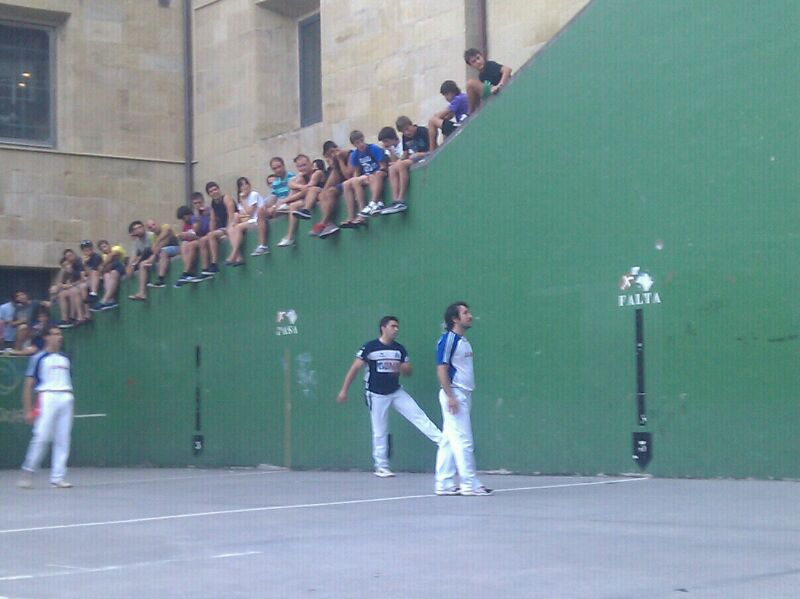 Mikel Goñi azaldu da frontoira eta beroketa lanetan ari da bere aurkariekin batera. Groseko pilotariak piraten txapelketako garaileak izan dira, eta sari moduan jaso dute Mikel Goñiren aurkako partida jokatzea.