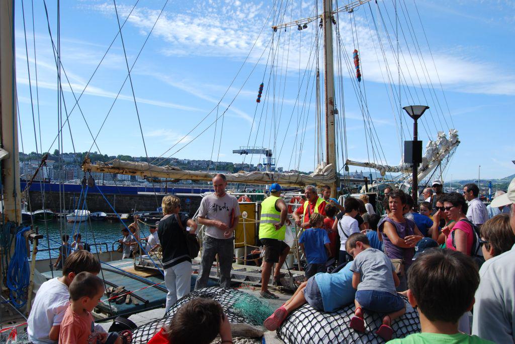 Txanda heltzean, Mikel Goenaga brigada kideak ontziaren bizkarrean barrena gidatu zituen bisitariak. Inguruan, eskifaiako kideetako batzuek ohiko lanarekin jarraitzen zuten; eta beste batzuek, bisitarien begiradek kezkatu gabe, solasaldi lasaian ari ziren txoko batean. Ibilbide laburra izan zen, hamar bat minutuko luzerakoa, ahalik eta lagun gehienei ikusteko aukera emateko. Sotoko zabalera ikusteko, honen goiko ateak zabaldu zituzten. Harridurez begiratzen zuten bisitariek, eta bere tamainari buruzko aipuak ugariak izan ziren. Logela gisa erabiltzen duten txokoak ere halakoak piztu zituen. Oraingoan, ordea, kontrako arrazoiarengatik: leku oso txikia baita. Eremu mugatuan, dena den, sukaldea, jangela, dutxak eta “sauna” deitzen dutena ere badituzte. Suediako banderarekin nabigatzen duen ontziaren txoko hauek kanpotik ikusita, amaitu zuten bisita.