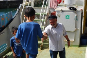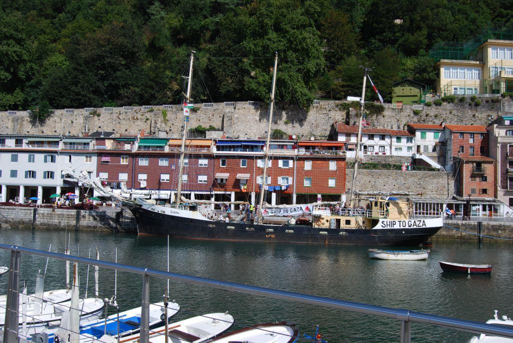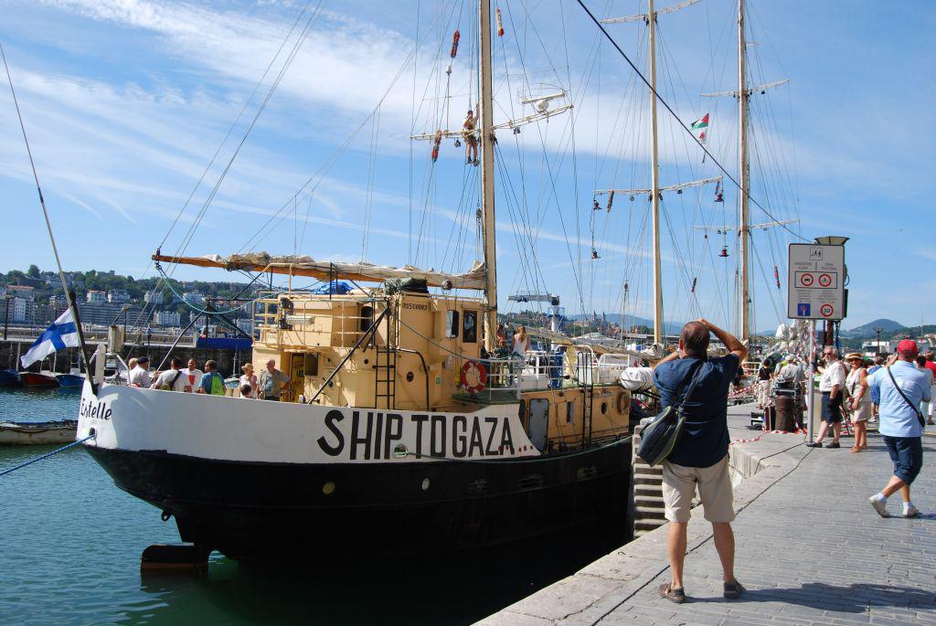 Ship to Gaza (Ontzia Gazarantz) leloak apaintzen duen barkua izan da. Porturatu eta bertan egoteko izandako erraztasunak eskertu dituzte ekintzaileek. Izan ere, ez baita ohikoena. “Oso pozik daude hirian izandako harrerarekin, portu guztietan hala izatea nahiko lukete; baina, esaterako, Alacanten oraindik ez dute portuan sartzeko baimena”, zehaztu zuen Berzosak. Beste tokietan zailtasunak direnak, erraztasunak izan dira Donostian. “Brigada zabala, anitza eta irekia da. Hau posible egiteko elkartu diren herritarrak gara. Erakunde eta agintariek erraztasunak eman dizkigute, baina herri ekimena da”, nabarmendu zuen intxaurrondotarrak.