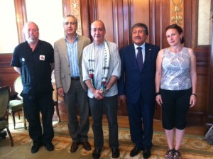 Martin Garitano ahaldun nagusia eta Musa Odeh, eskifaiako hainbat kiderekin. (Argazkia: Gipuzkoako Foru Aldundia)