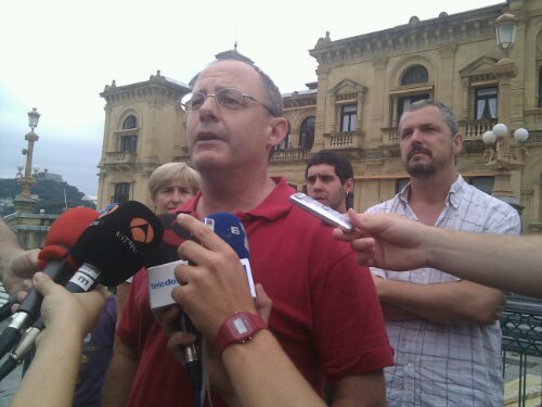Juan Karlos Izagirre alkateak eta beste hainbat udal ordezkarik harrera egin diote preso gaixoen eskubideen aldeko giza kateari. Donostia Ospitaletik Alderdi Ederrera bidea egin duen mobilizazioa txalo artean iritsi da udaletxera. Eskaera honen ikur gisa aulki bat zeraman Aralarreko kide Iñaki Irazabalbeitia agurtu du alkateak. Ondoren egindako adierazpenetan Izagirrek bat egin du preso gaixoak askatzeko eskaerarekin, eta martxaren debekua ulertzen ez duela esan du. Halaber, herritarrak protesta ekimen honetan parte hartzera animatu ditu. Martxa 14:30ean abiatuko dute berriro, Aietera bidean. Bakearen eta Giza Eskubideen Etxean aulki bat utzi, eta Eusko Jaurlatitzaren lurralde ordezkaritzara joango dira, bertan gauza bera egitera.
