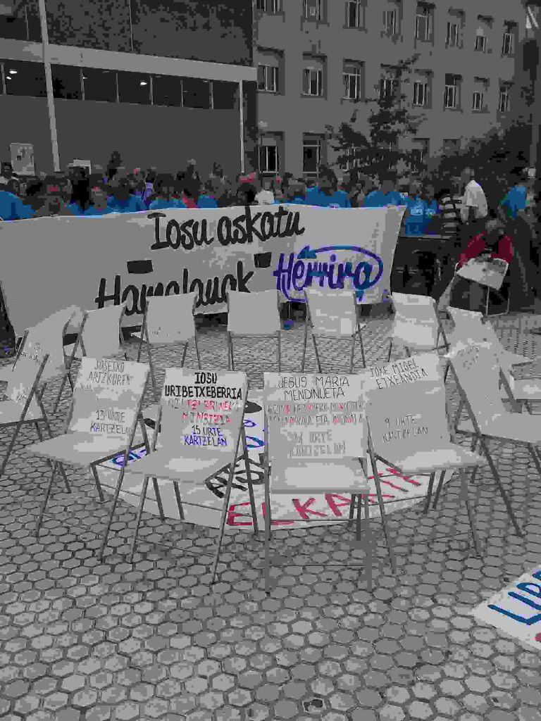 Josu Uribetxeberria eta gaixo larri dauden beste 13 presoak ordezkatzeko aulki hutsak jarri dituzte Donostia Ospitalearen aurrean. Donostiatik Arrasatera egin behar zuten martxa debekatu ondoren, Herrira mugimenduak ospitalera joateko “premiazko deialdi garrantzitsua” egin du. Ehundik gora pertsona elkartu dira bertan, eta hainbat hedabide bertaratu dira.