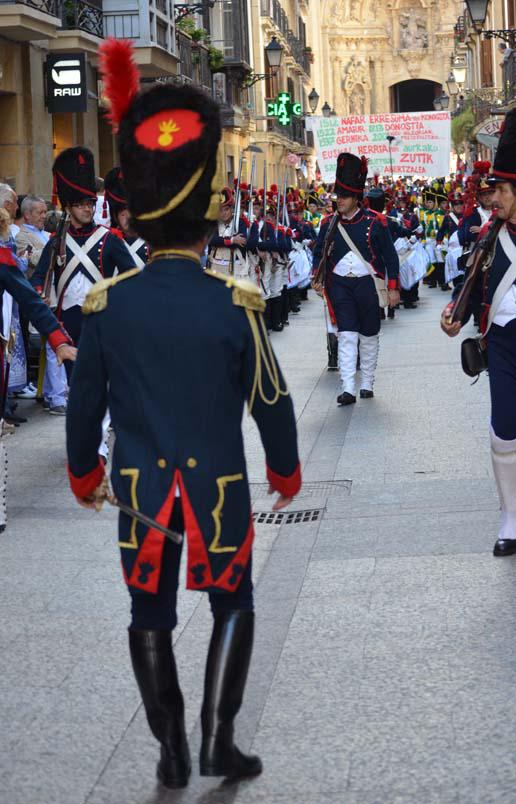 Donostiak 1813ko abuztuaren 31n sufritutako erasoa gogora ekarri dute. Danborrariak, fusilariak, kanoikadak… Hainbat herritar gerturatu dira Parte Zaharrera, egun hartan gertatutakoa oroitzera.