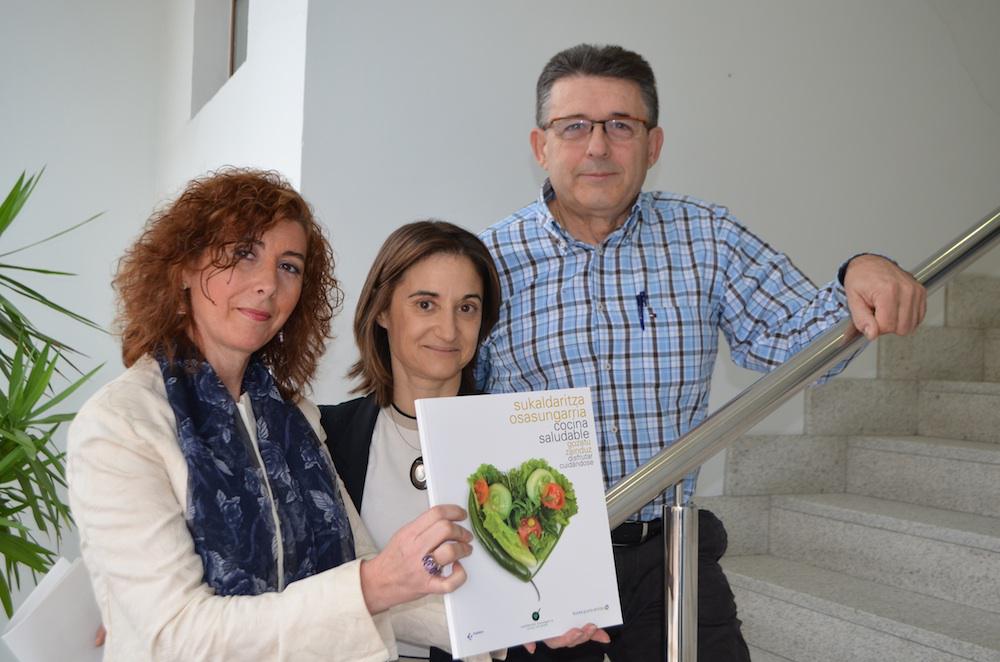 Eduardo Tamayo, Groseko osasun-zentroko sendagilea eta Sukaldea eta Bihotza kanpainaren koordinatzailea, Marisa Merino Osakidetzako kudeatzailea eta Joima Panisello, Bartzelonako dietalaria izan dira liburuaren aurkezpenean.