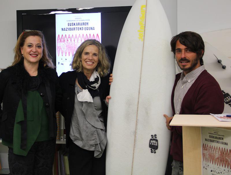 Aizpea Goenaga (Etxepare Institutua), Edurne Ormazabal (Eitb.com) eta Sancho Rodriguez (Surfilm Festibal).