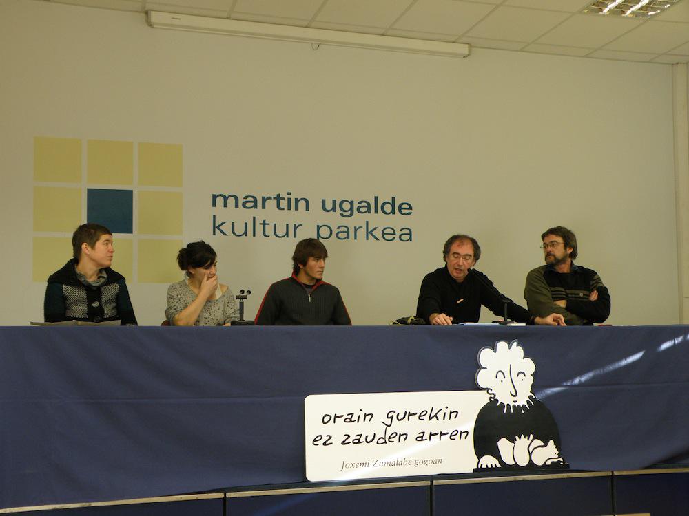 Marta Luxan, Maddi Zumalabe, Jon Zumalabe, Iñaki Uria eta Josu Landa, goizeko agerraldian. (Argazkia: K. M.)