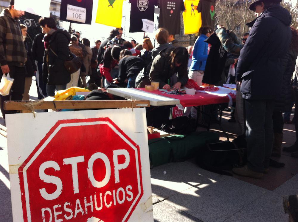 Guztira, 3.000 lagun inguru bildu dira etxe kaleratzeak salatzeko egindako manifestazioan. Stop Kaleratzeak kolektiboak deituta, Donostiako kaleak bete dituzte banketxeen eta politikarien aurkako oihuekin.