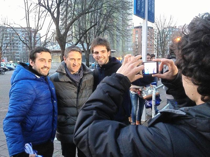 Ilara egiten ari diren realzaleak agurtu dituzte Montanierrek eta zenbait jokalarik