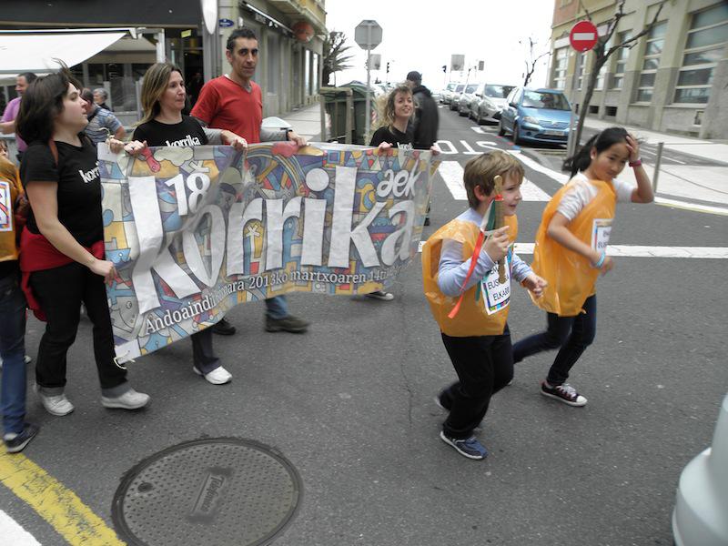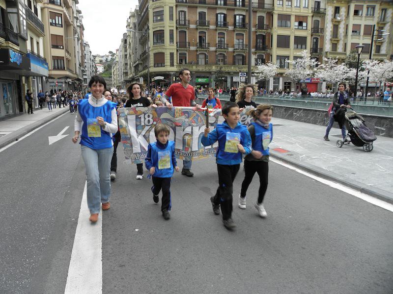 Grosen ez da giro izan ostiral arratsaldean. Korrika Txikiak auzoko kaleak hartu ditu. Kataluinia plaza, Zabaleta kalea, Berminghan kalea, Txofre plaza… Groseko bazter horiek guztiak haurrez bete dira. Hain zuzen ere, lekukoa eskuz esku, eskolaz eskola ibili da kaleetan barrena, Korrika handia bailitzan. Zuhaiztik, Presentacion de Mariak, Miren Bihotzak eta Zurriola ikastolak hartu dute parte Korrika Txikian; ikastetxe horietako gaztetxoek partekatu dute lekukoa.