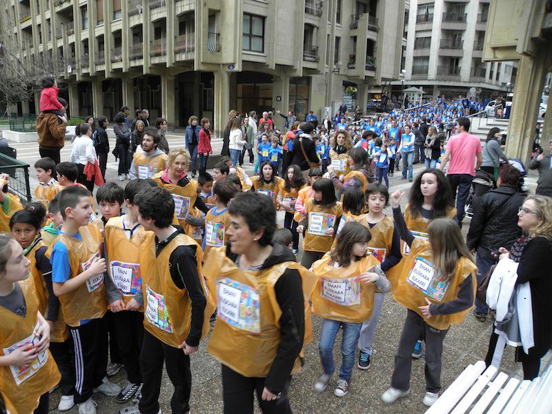 Ibilbidea bukatuta, Txofre plazan bildu dira denak. Haur, guraso, irakasle eta antolatzaileen bilgune izan da, hau guztia Korrika handiaren bezperan.