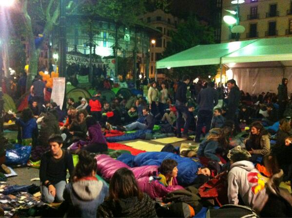 Bulebarreko Aske Gunea lepo dago. Bi mila pertsona inguru zeuden 23:00etan, eta horietatik 830 gaua pasatzeko prest. Auzolanaren bitartez, lo egiteko guneak atondu dituzte eta, mikrofonoen bitartez, zenbait gomendio luzatu dituzte; hain zuzen ere, ohartarazi dute, Ertzaintza iritsiz gero, indarkeriarik ez erabiltzeko. Ohartarazi dute ere, hainbeste jenderen artean, kalez jantzitako poliziak egon daitezkeela istiluak pizteko.