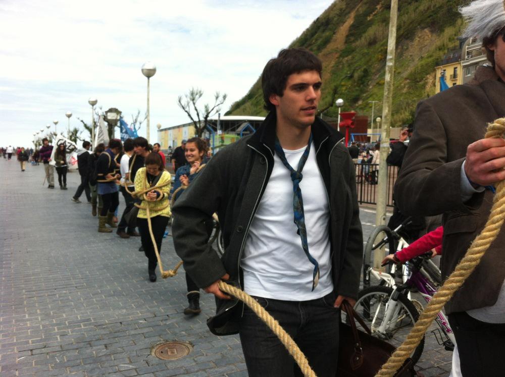 Gainera, “kapitalismoaren zapalkuntza” irudikatzeko hainbat gazte sokaz lotu dira eta bidean enpresari papera egiten zuen beste gazte batek tiraka eraman ditu Bulebarreraino. Bulebarrean haien burua askatuko dute eta “antolakuntzaz, langile borroka” irudikatuko dute.