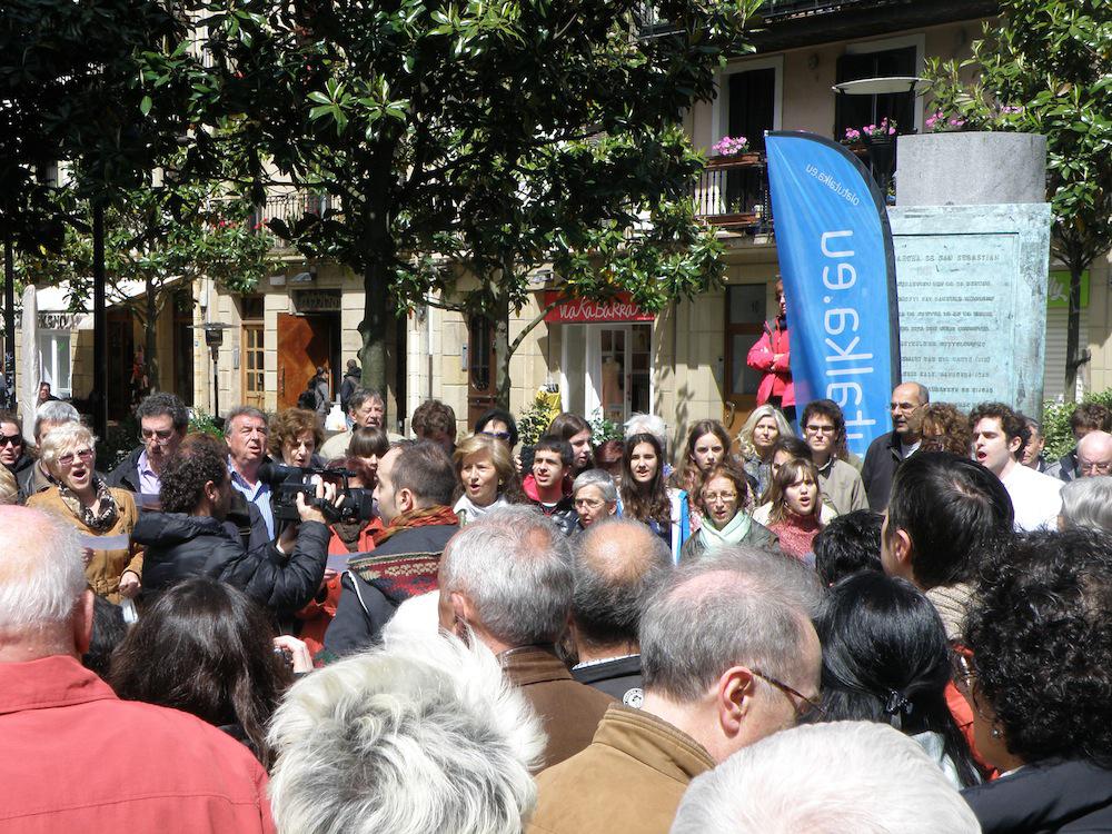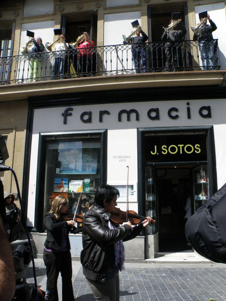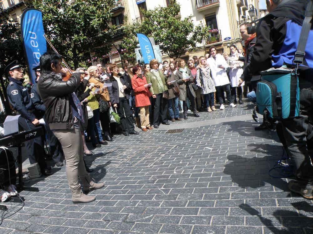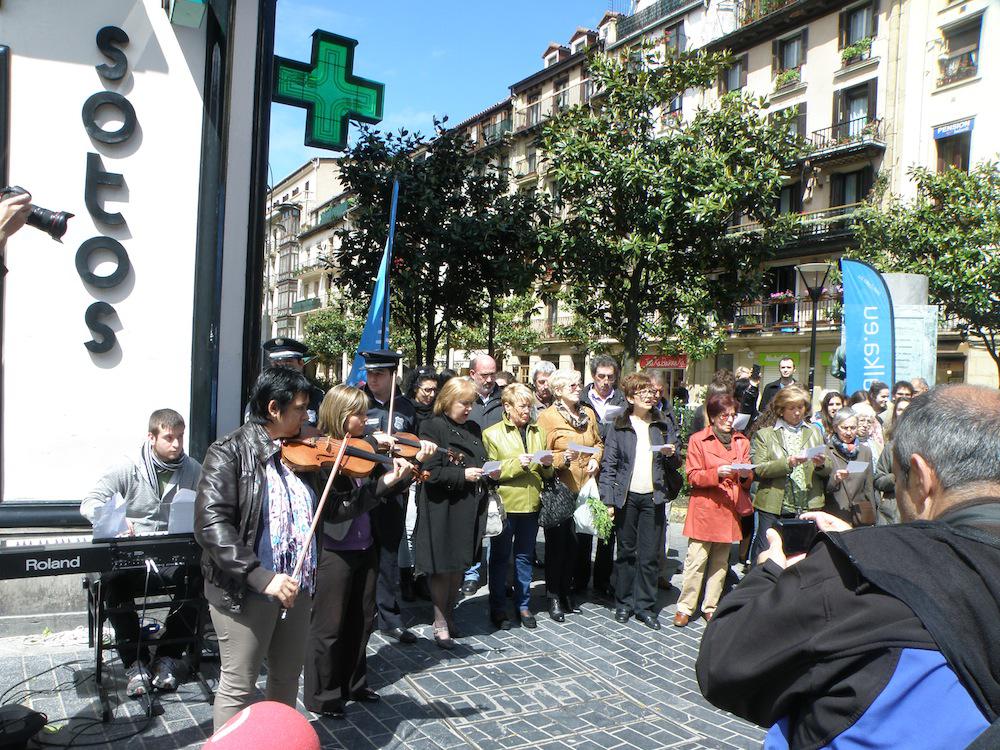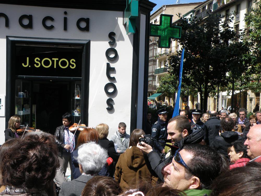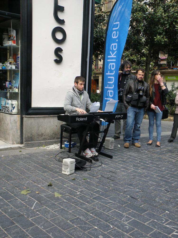 Gaur, 12:00etan Bretxa inguruan egin dute hasiera ekitaldia. Edukia sorpresazkoa zen, eta hala hartu ditu inguratutakoak ere. Kalean zegoen pianista batek hainbat pieza jo ditu, “besterik gabe” bertan egongo balitz bezala. Une batean ordea flashmobari jarraituz, jende artetik bi biolin-jotzaile azaldu dira eta pianistarekin batu dira kantu bera jotzen. Ondoren lehen pisuko balkoiean hainbat lagun tronpa joz batu dira kantura.