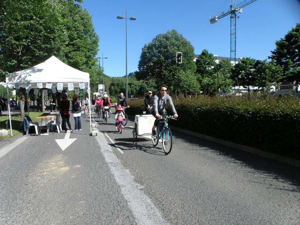 Askok, bizikleta izan dute bide lagun, beste asko oinez edo patinetan aritu dira. Bidean, zein hiru gunetan hainbat ekimen antolatu dituzte.