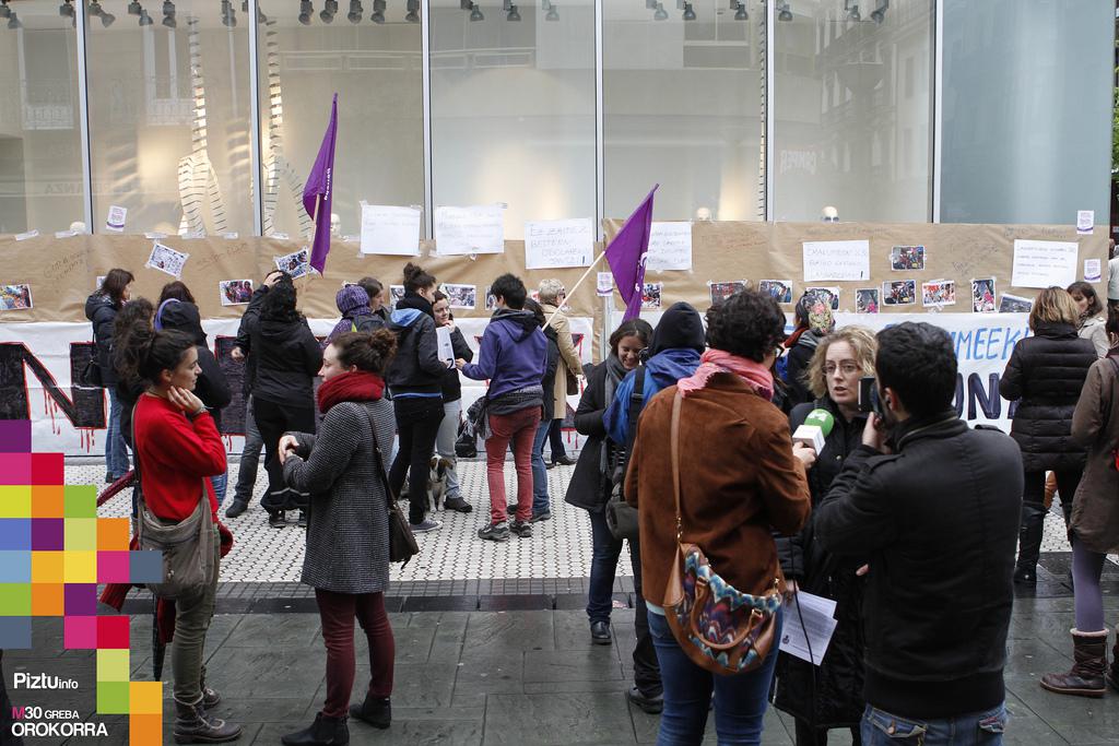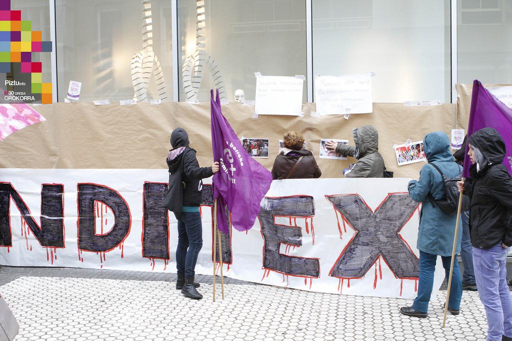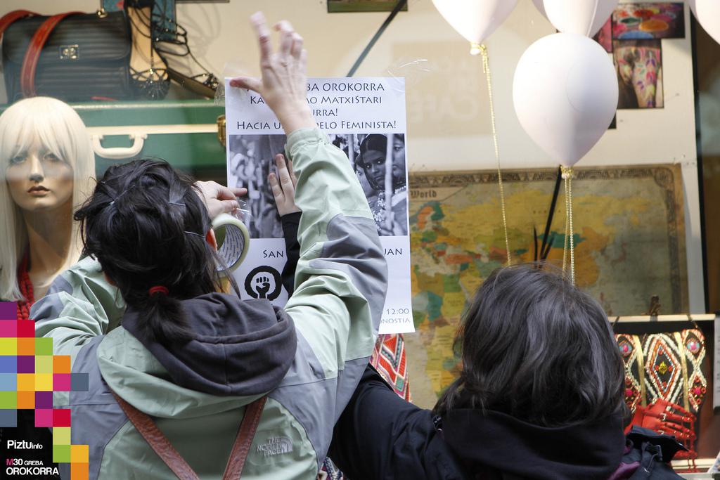 Bilgune Feministak ekintza feminista bat egin du eguerdian San Martin merkataritza gunean. Inditex enpresako arropa denden inguruan mural handi bat egin dute. Apirilaren bukaeran, Bangladeshko ehun-lantegi batean hildako emakume langileen argazkiak jarri dituzte. Inditexen denden irabazien oinarrian emekaumeen esklabotza dagoela salatu dute.