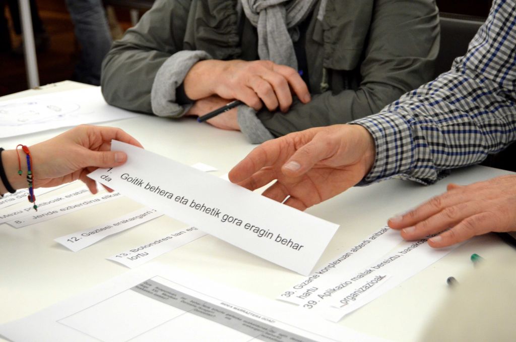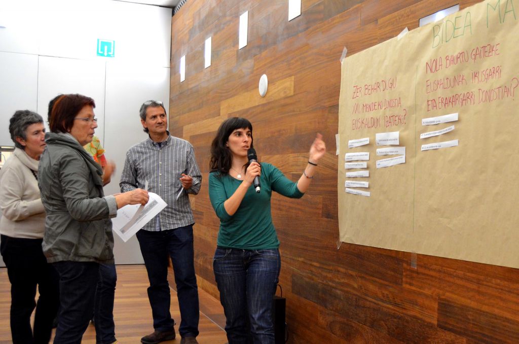 Orri zuriak eta margoak eskuetan, jolas moduan aritu dira sei mahaingurutan bildutako berrogeita hamar ideia esanguratsuenei buruz eztabaidatzen, betiere jardunaldien oinarri diren hiru galderei erantzuteko helburuarekin: zer behar dugu XXI. mendean Donostia euskalduntzeko? Nola bihurtu gaitezke euskaldunak ikusgarri eta erakargarri Donostian? Zer egin dezakegu, nola antolatu beharko genuke donostiar euskaltzaleok bide horretan?