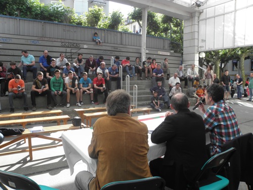 Antiguako pilota txapelketaren aurkezpenean hainbat auzotar eta pilotari bildu dira (Argazkia: E. Zabala)