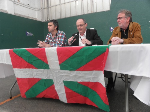 Antiguako Pilota Txapelketaren aurkezpena. Pilota federazioko Mikel Arregi, Donostiako alkate Juan Karlos Izagirre eta Antiguako Pilotazaleakeko presidente Jesus Mari Rubio (Argazkia: E. Zabala)