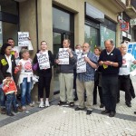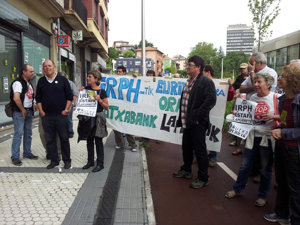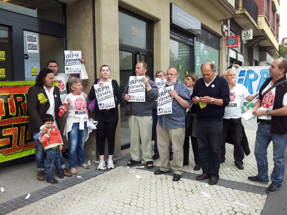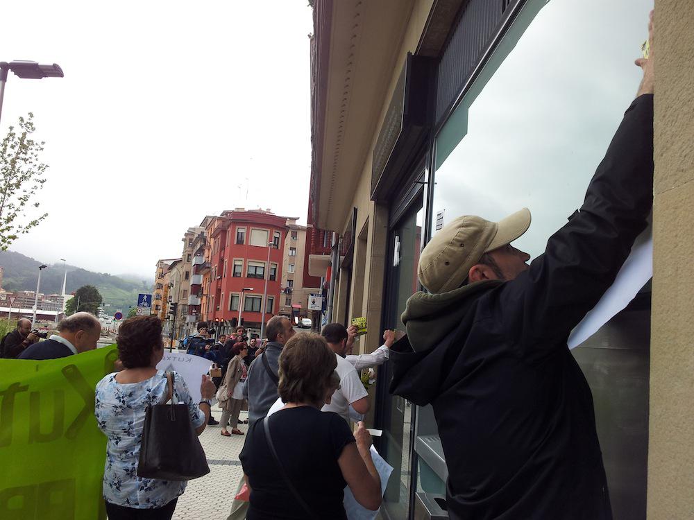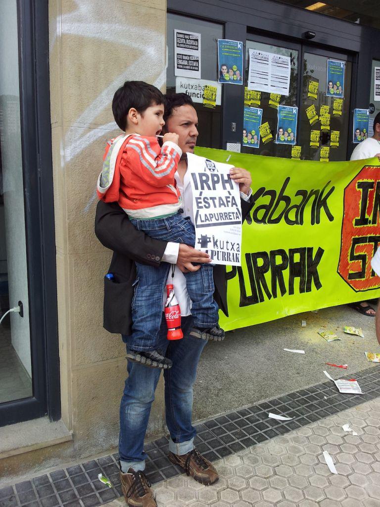 Kanpoan egin dute protesta, eta atarian bildu dira hipotekak kaltetutakoak. Eric Avilak bere egoera zein den azaldu du hedabideen aurrean. 2010. urtetik langabea da Avila, baina halere, hilero ordaindu ahal izan du hipotekaren kuota: 1.100 euro hilero. Bere emazteak lan egiten du, baina lanaldi erdia du.; aldi baterako lan kontratua du gainera. Hipoteka aiton-amonen pentsioari esker ordaintzen dute.