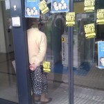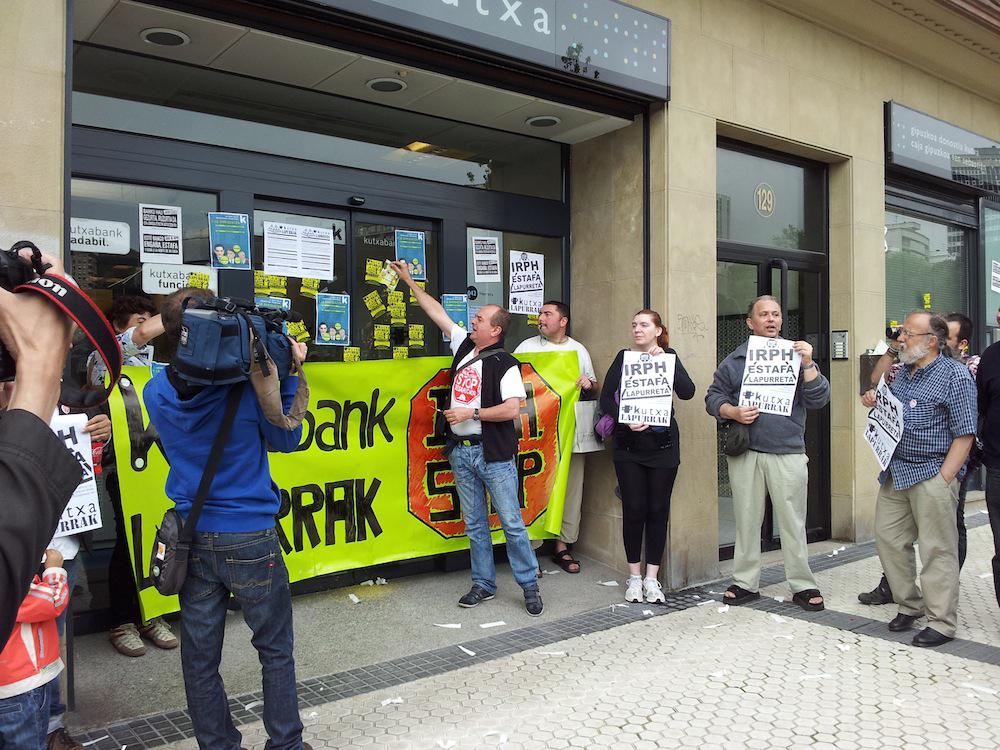 Bulegoaren atarian Kutxabanken aurkako oihuak izan dira nagusi. Protesta sinboliko bat ere egin dute: zopa egiteko hautsak bota dituzte atarian. Protesta honen zergatia azaldu dio Avilak Irutxuloko Hitzari: “Hipoteka kontratua negoziatzera etorri nintzen. Zuzendariari, Jaione Goenagari, nire egoera azaldu nion. Esan zidan jende askok zopa jaten bizirauten duela. Grabatuta daukat berak esandakoa”.