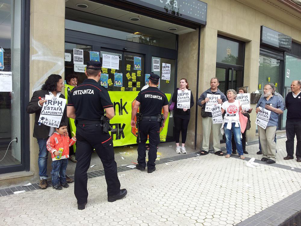 Herrerako bulegoan sartu nahi zuten hipotekak kaltetutakoen alde protesta egiteko.