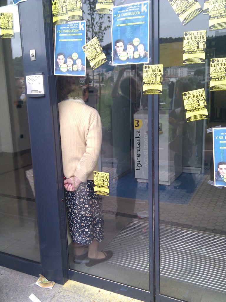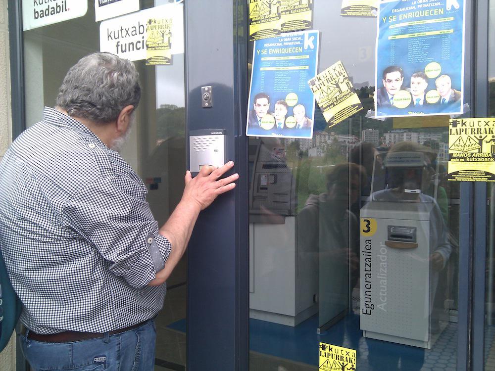Stop Kaleratzeak deituta, hainbat herritar Herrerako Kutxabanken bulegoan elkartu dira gaur. Hipotekak kaltetutako Eric Avila herreratarraren egoera salatzeko protesta egin dute. Bulegoa okupatu eta zuzendariarekin negoziatu nahi zuten; atarira gerturatu direnean, ordea, ateak blokeatu egin dituzte.