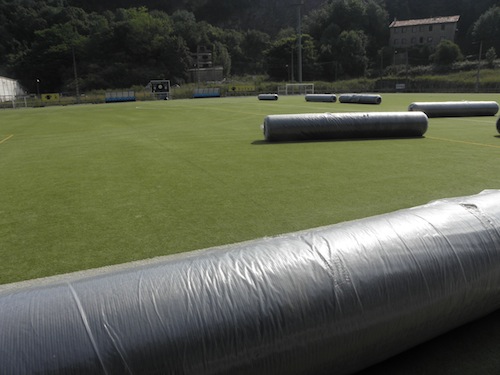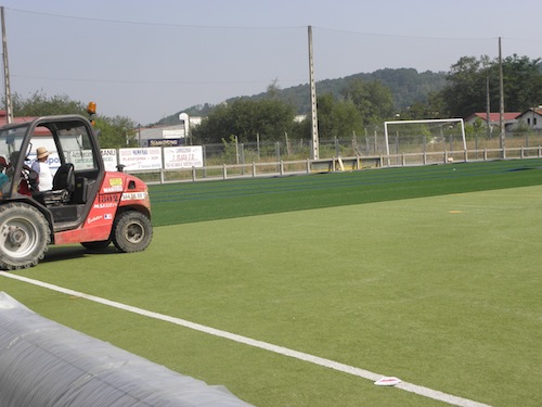 Martuteneko futbol zelaiko belarra aldatzen ari dira