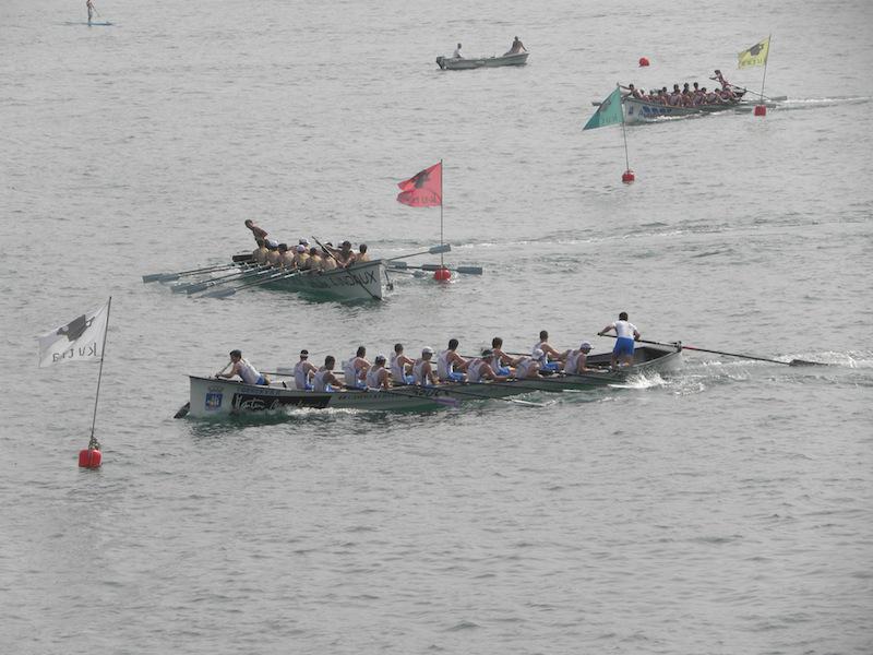 KAE-1 Ligako laugarren estropada jokatu dute larunbata arratsaldean, Kontxako uretan, hiru txandatan banatuta. Lau luze egin dituzte traineruek, eta gorabeheraz beteriko lehia izan da. Izan ere,txanda bakoitzean atzetik aurrera egin dute irabazleek, azken luze bikaina eginda.