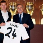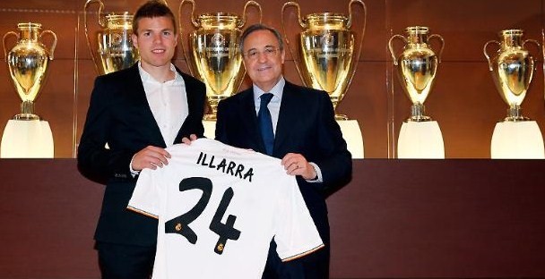 “Illarra, Illarra” oihuen artean jaso dute Real Madrileko zaleek. Alkandora zuria eta jaka eta galtza beltzak soinean, irribartsu azaldu da mutrikuarra, belarritakorik gabe. Alboan, bere irudi bat jarri dute, Espainiako selekzioaren elastikoarekin. 24 zenbakidun kamiseta eramango du Madrilen, eta duela egun gutxi Realaren elastikoa ez zen beste kamiseta bat jantziko zuenik ez zuela espero aitortu du. “Gaur oso egun berezia da niretzat, klub handi honen parte izateagatik”, adierazi du, eta Realarentzat eta realzaleentzat esker hitzak izan ditu. Ondoren, bere asmoen berri eman du: “Dena emango dut armarri honengatik”.
