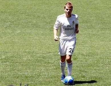 Ohorezko palkotik Santiago Bernabeuko berdegunera irten da gero. Zuriz jantzita zelairatu da, lehen aldiz. Baloia ukitu du, argazkiak egin dizkiote eta zaleak agurtu ditu, baita harmailetara zenbait baloi jaurtiki ere, opari moduan. Era berean, bidaian lagundu dioten lagun eta senideekin argazkia atera du berdegunean, denak irribartsu. Prentsa aretoan amaitu du bere goizeko jarduna, komunikabideen aurrean adierazpenak egiteko. Madrilgo prentsara ere egokitu beharko du bere burua. Gaur, komunikabideekin izandako lehen harremanean, Xabi Alonsori buruz galdetu diote behin baino gehiagotan, tolosarrarekin alderatu nahian.