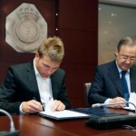 Kontratua sinatzen, Florentino Perez presidentearekin. (Argazkia: Realmadrid.com)