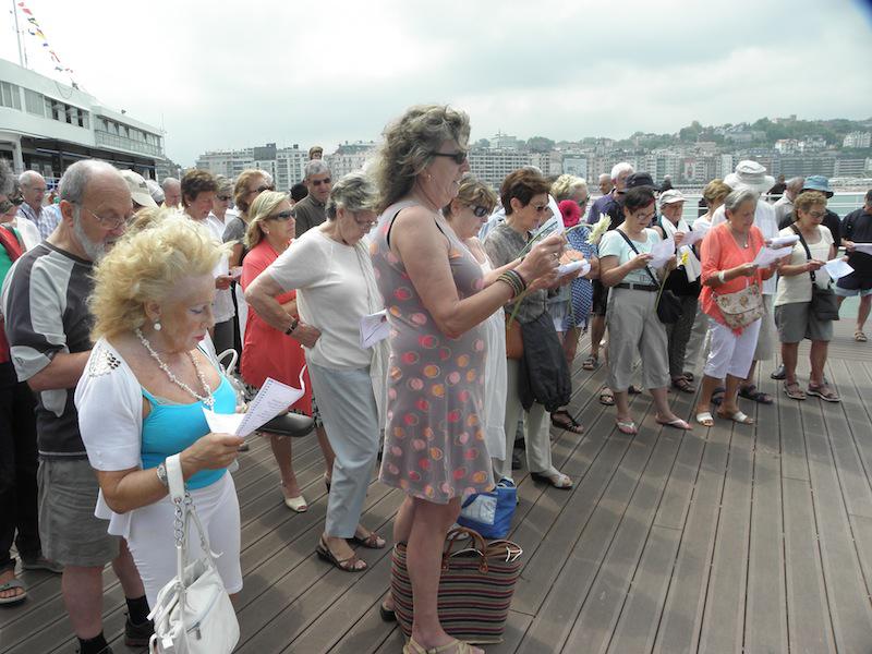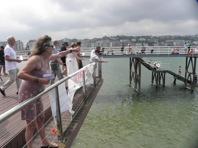 - Lore eskaintza egin dute; loreak uretara bota dituzte, itota hil baitzen Balentxi. (Argazkia: Aritz Sorzabal)