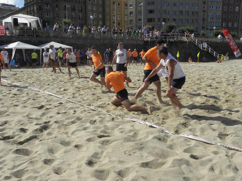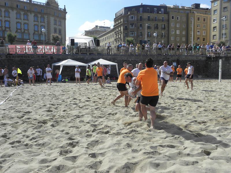 Giro ederrean aritu dira goizean hondartzan, errugbian, Sagues aldean. Jokalariek oinutsik jokatu dute, halaxe behartzen baitu txapelketako araudiak. Jende ugari hurbildu da lehiak ikustera; hala ere, eguzkiak lagun, hondartzazaleak askoz gehiago izan dira, uda sasoiko egun paregabe batean normala den bezala. Partidetan Bera Berako jokalariak izan dira, talde desberdinetan banatuta. Beste hirietatik ere etorri dira txapelketan parte hartzeko; Biarritzetik, kasu.